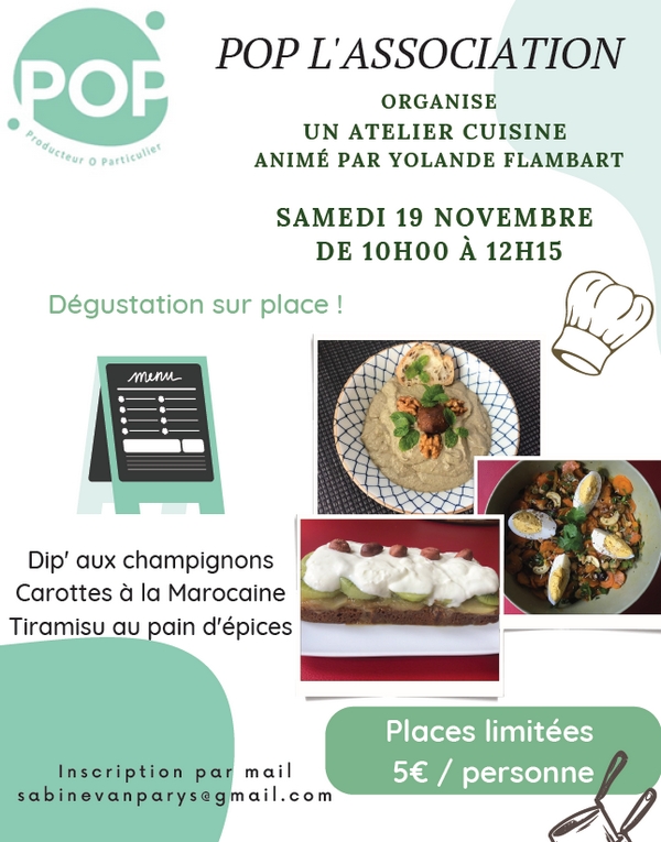 Samedi dernier, POP L’Association organisait au magasin un atelier Cuisine animé par Yolande Flambart. Au menu : Dip’ aux champignons, carottes à la marocaine et Tiramisu au pain d’épices. Les participants ont préparé une cuisine santé, variée, savoureuse et relevée, issue du monde entier.