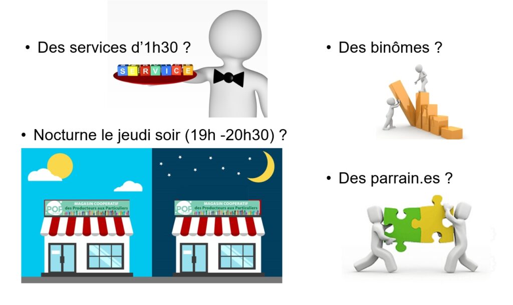 Enfin, nous avons échangé sur la gestion des créneaux et comment faciliter leur réservation pour les actifs. Plusieurs solutions ont été évoquées