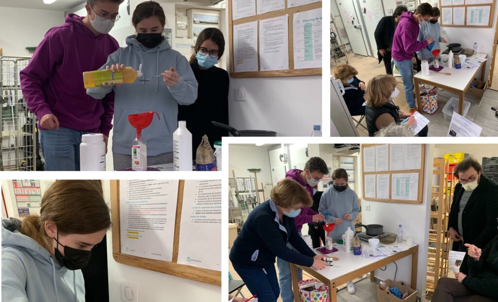 L’atelier « fabriquer ses produits ménagers sains » s’est déroulé dans la bonne humeur animé par une jeune équipe de l’association « ressources & vous« , avec les produits du magasin.